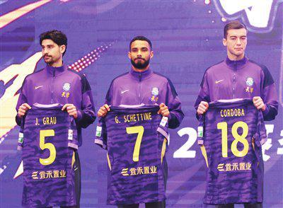 前天上午,津门虎俱乐部举行了主题为“砥砺奋进 并肩前行”的新赛季壮行会。会上,新加入津门虎队的10名内、外援,也在壮行会上正式接过了印着自己名字和号码的比赛服。其中豪梅·格劳身披5号球衣、谢蒂内接过了阿代米的7号球衣、刘帅16号、吴兴涵17号、科尔多瓦18号、季胜攀20号、齐雨熙21号、乃博宁林33号、李帅琪38号、蔡承峻39号。